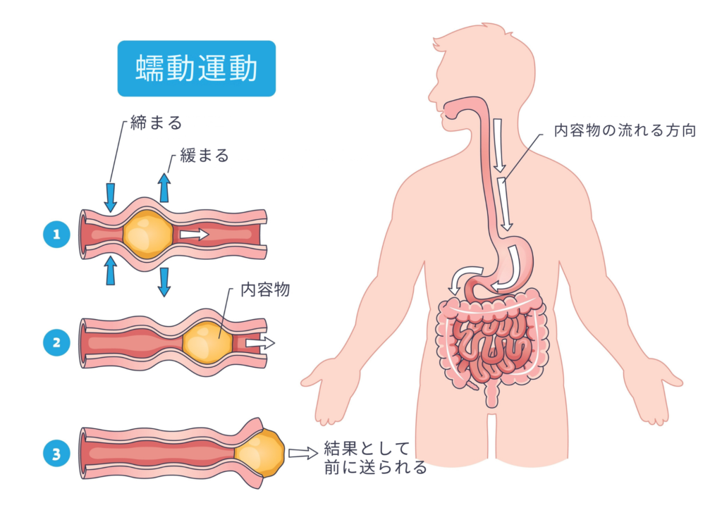 という流れで、腸の蠕動運動に貢献すると考えられます。
